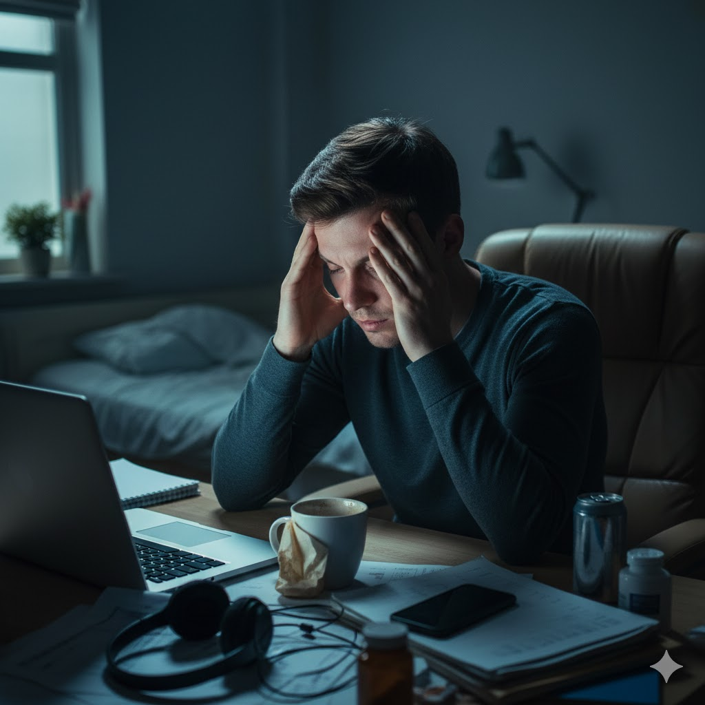- 긴장성 두통: 스트레스와 잘못된 자세로 인해 목과 어깨 근육이 경직되면서 발생하는 가장 흔한 두통입니다. 만성 피로 상태에서는 통증 역치가 낮아져 두통이 더 자주, 강하게 느껴지게 됩니다.