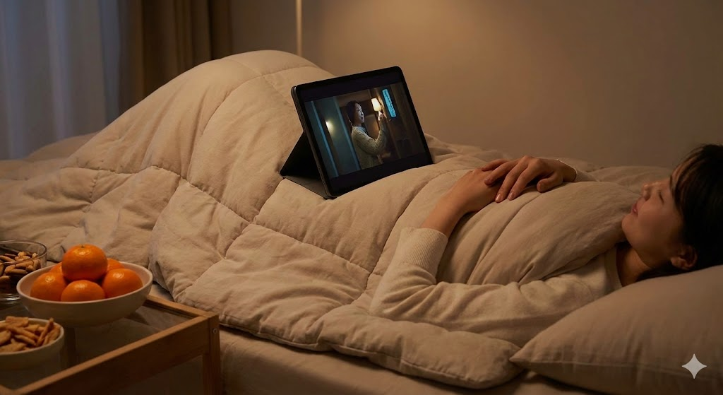 그동안 바빠서 미뤄뒀던 OTT 시리즈가 있다면 지금이 바로 정주행 타이밍입니다. 옆에 귤 한 박스와 주전부리를 가득 쌓아두고 밤새워 '다음 화' 버튼을 누르는 즐거움! 누구 눈치 볼 필요 없이 깔깔대고, 때로는 펑펑 울기도 하며 감정을 마음껏 발산해보세요. 이거야말로 진정한 연말의 특권이 아닐까요?